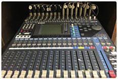 スピーカー、パワーアンプ、ミキサー、CDレコーダー、外部入力端子(PC/スマホ)、マイクロフォン、マイクケーブル、プロジェクター・スクリーン、ビデオカメラなど